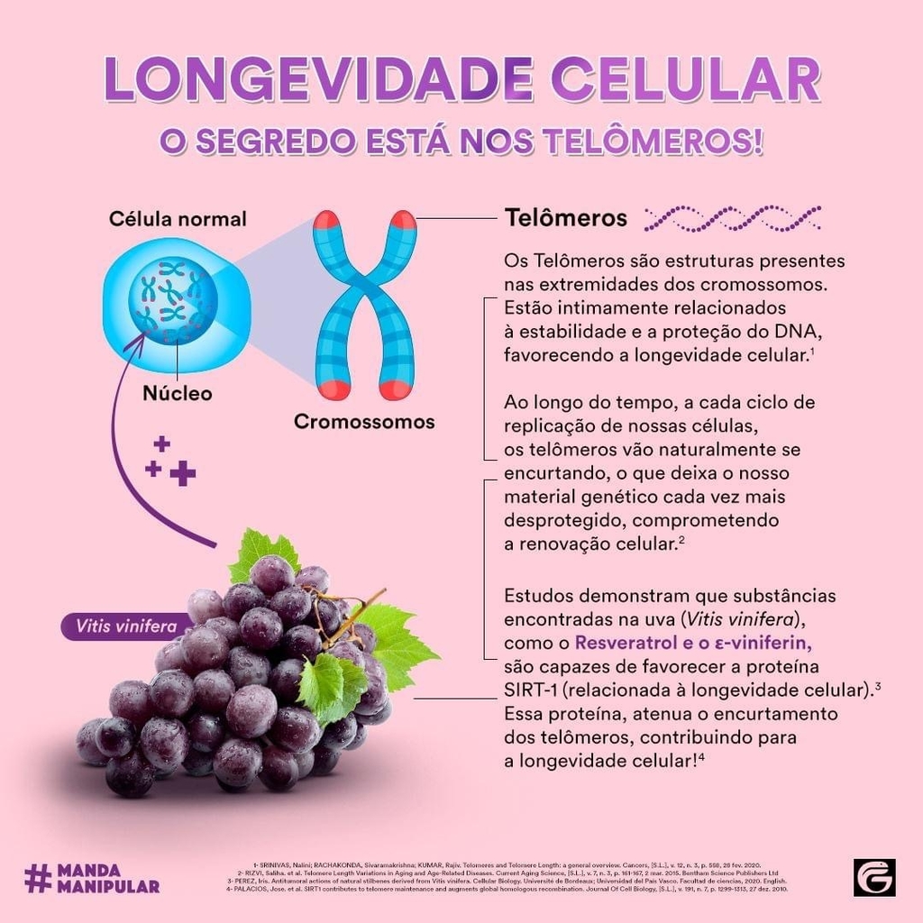 Resveravine proporciona nível mais elevado de defesa contra os radicais livres, potencializa o crescimento celular normal e a manutenção dos níveis aceitáveis de LDL. Além disso, devido à sua composição, estimula a atividade normal do gene SIRT01, presente em todos os seres vivos e considerado um dos mecanismos que controlam a longevidade, atuando também como um regulador do envelhecimento.